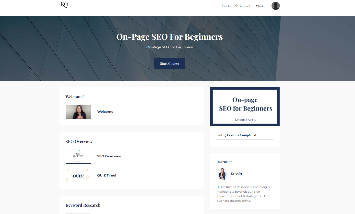 Kristin wanted to package her SEO knowledge into a professional course for beginners.